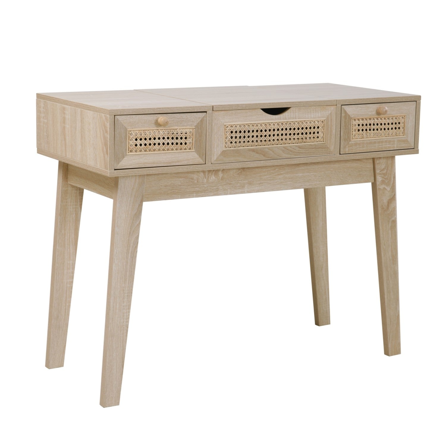 - LOOK YOUR BEST EVERY DAY - Our Rattan Vanity Table has a cool flip-top mirror that lets you do your makeup or hair perfectly. It also has two drawers to keep your stuff organized.