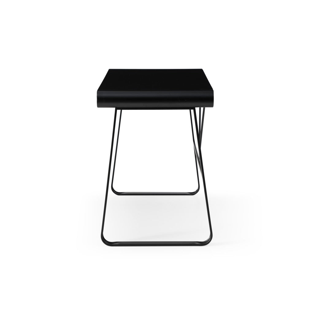 - ATTRIBUTES: 2 Storage Drawers, Geometric Leg Frame, Clean and Streamlined Design