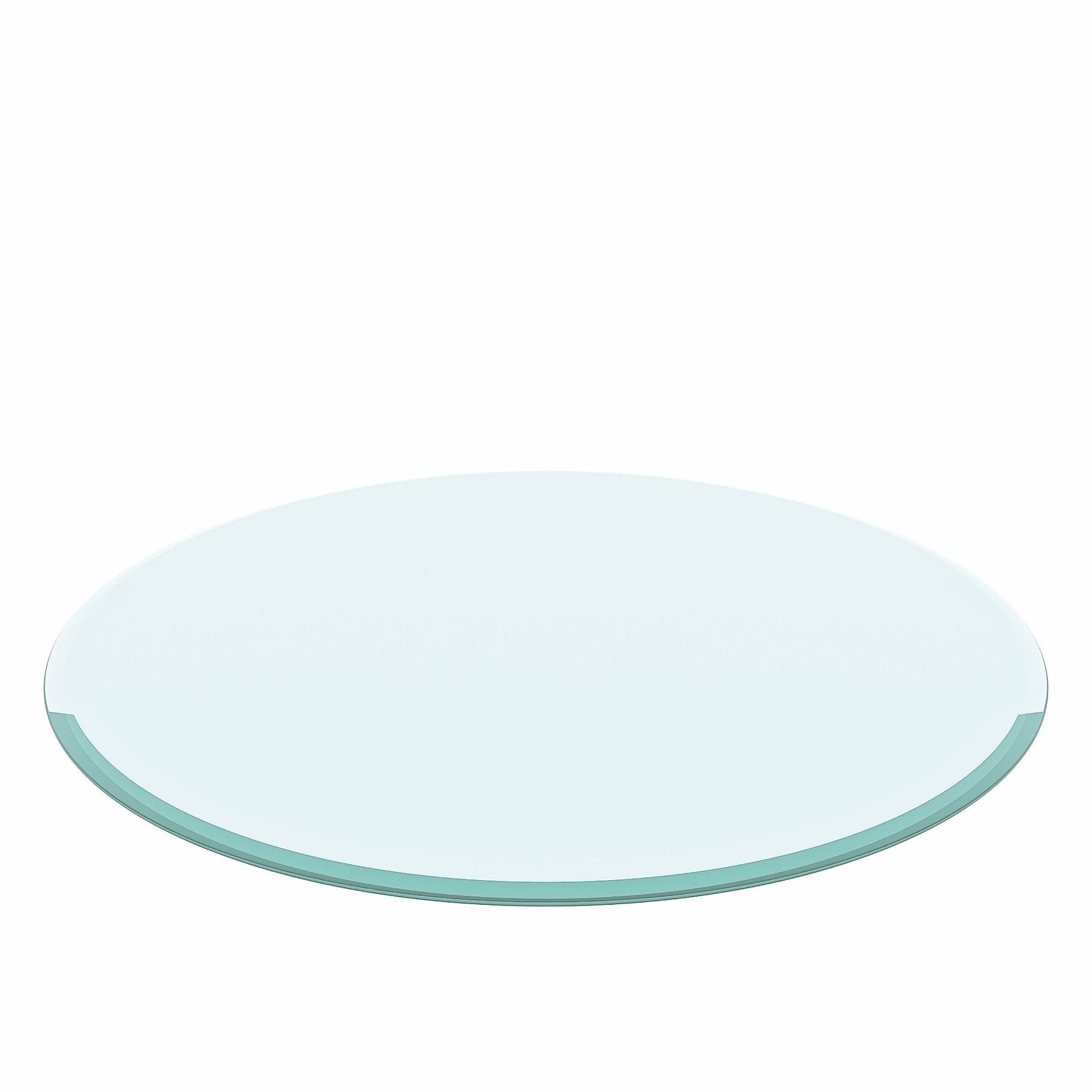 Round Tempered Glass Table Top Clear Glass, Thick Beveled Polished Edge - Black by Couch.com
