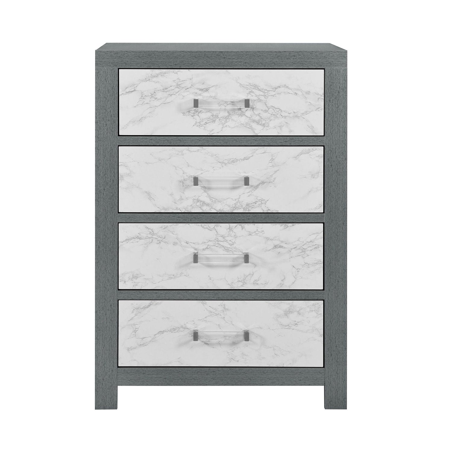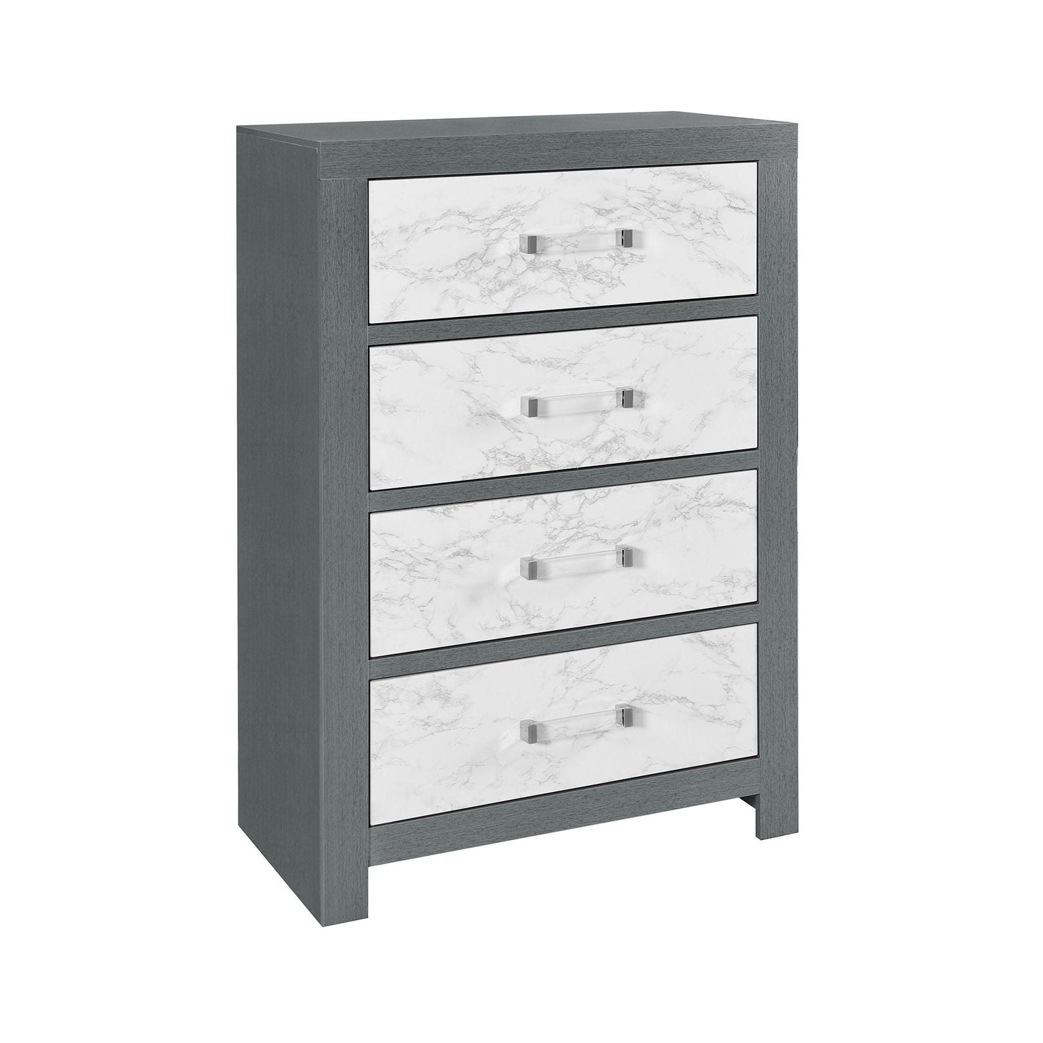 - Design and Style: The RUSH GREY CHEST features a contemporary style with faux marble drawer fronts, offering a sophisticated and modern look that will enhance the decor of any room.