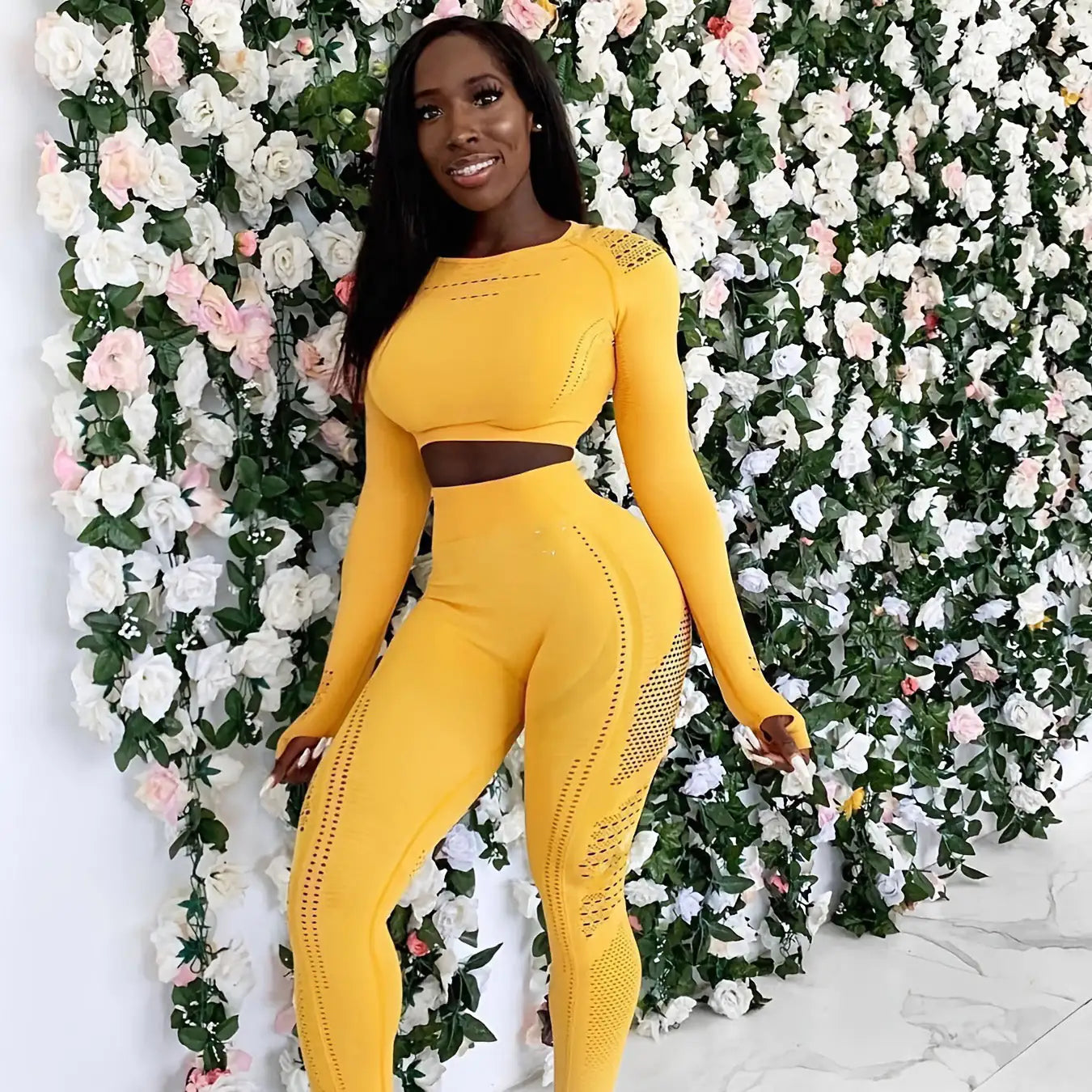 From leisurely strolls to intense gym sessions, our Seamless Women Yoga Set is your ultimate outfit choice. Whether it's yoga, training, running, dancing, hiking, or more, it adapts seamlessly to your active lifestyle. Moisture-wicking technology ensures you stay dry, making it the perfect companion for any exercise adventure.