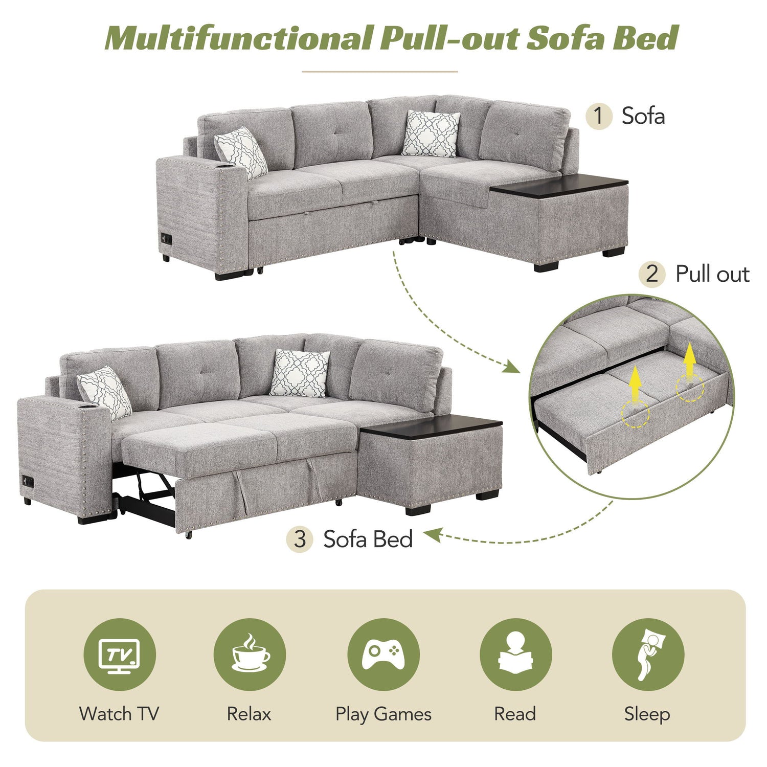 Sectional Pull-Out Sofa Bed L-Shaped Corner Sofa Couch With Storage Chaise, USB Ports, Power Sockets, Cup Holder For Living Room, Bedroom, Study by Couch.com - Gray is backordered and will ship as soon as it is back in stock.