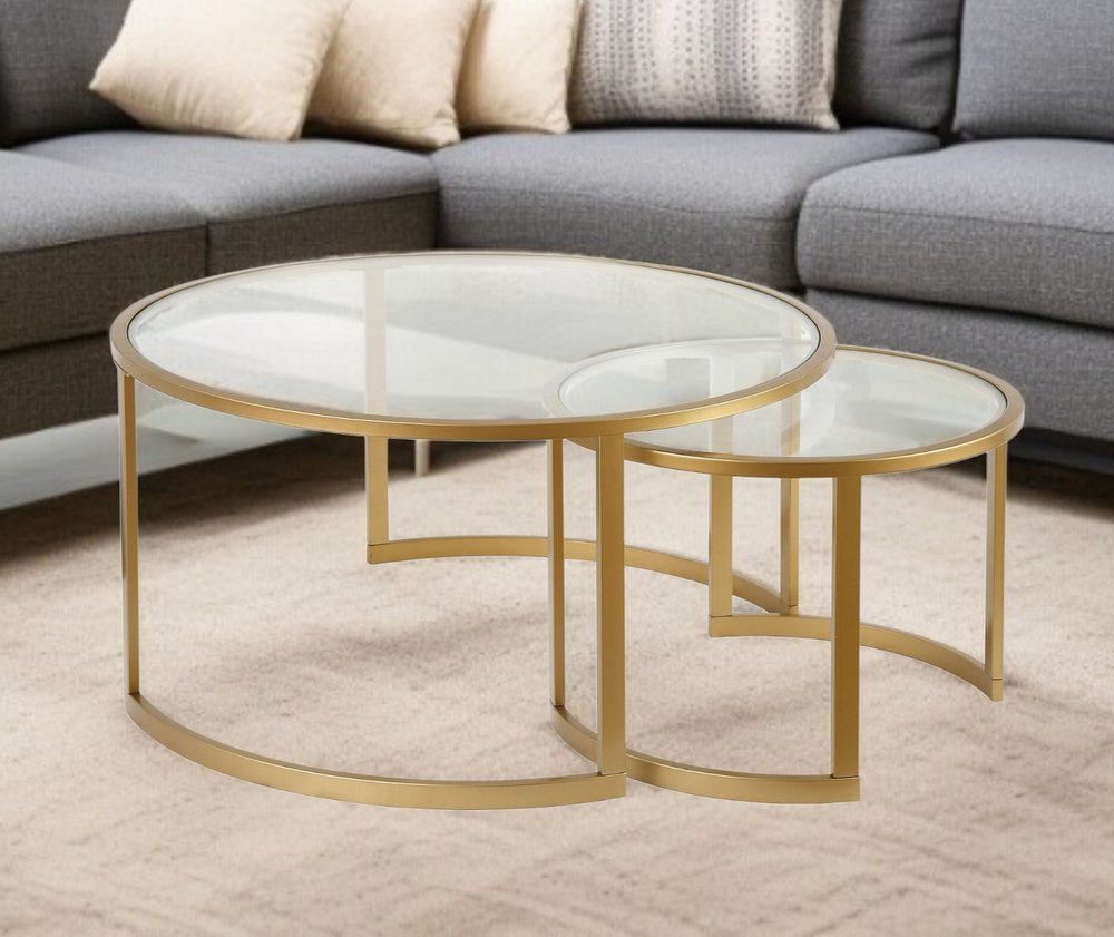Keywords | glass round nested coffee tables, round nested coffee tables, nested coffee tables, gold glass round nested coffee, 36" gold glass round nested |