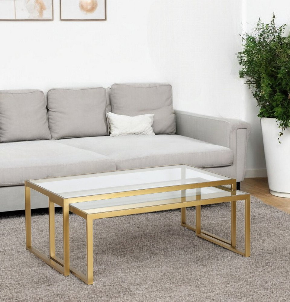 Set of Two Gold Glass And Steel Sled Nested Coffee Tables is backordered and will ship as soon as it is back in stock.
