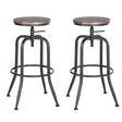 Set of Two Brown And Black Solid Wood And Steel Swivel Backless Counter Height Bar Chairs