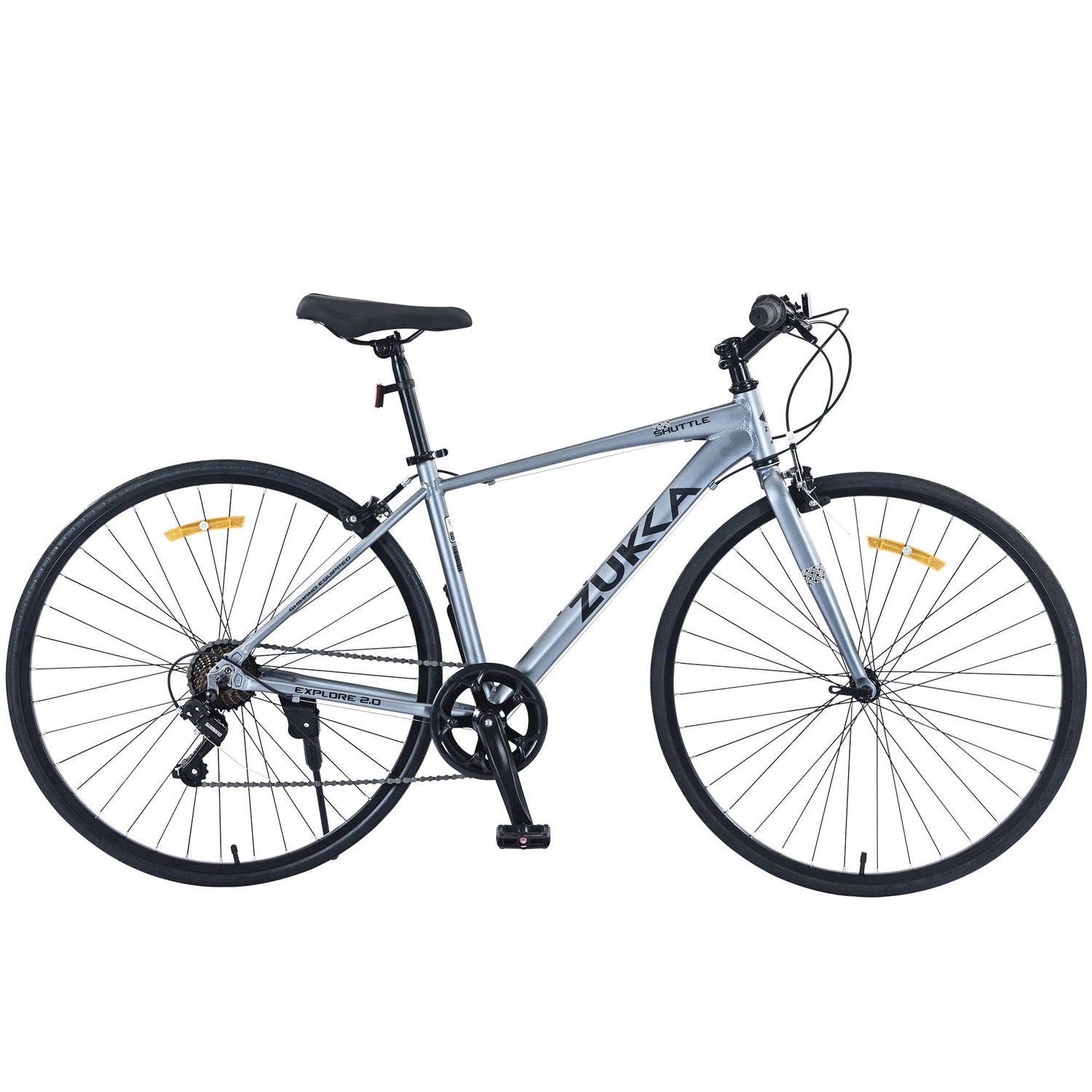 Couch.com Shimano 7 Speed Hybrid Bike Aluminum Alloy Frame C-Brake 700C Road Bike For Men Women's City Bicycle Gray, Metal Construction, Gray Finish