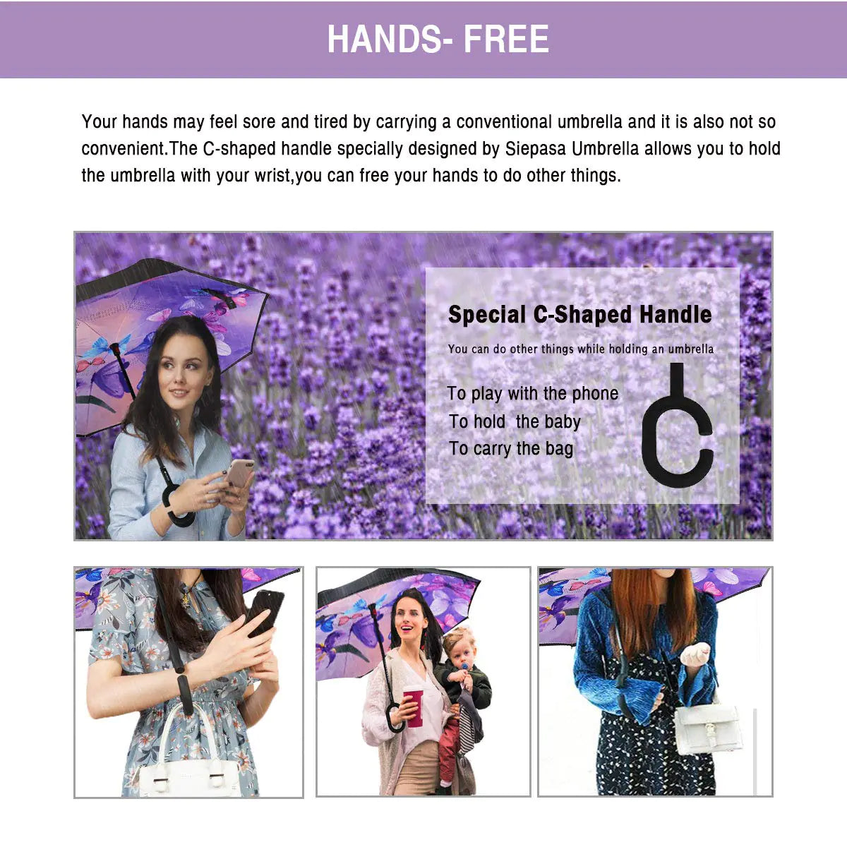 SIEPASA 49/56 Inch Inverted Reverse Upside Down Umbrella, Extra Large Double Canopy Vented Windproof Waterproof Stick Golf Umbrellas with C-shape Handle.