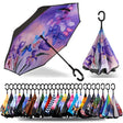 SIEPASA 49/56 Inch Inverted Reverse Upside Down Umbrella, Extra Large Double Canopy Vented Windproof Waterproof Stick Golf Umbrellas with C-shape Handle. Blue Butterfly 49 Inch