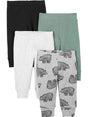 Simple Joys by Carter's Unisex Babies' Cotton Pants, Pack of 4 12 Months Black/Grey Bear/Spruce Green/White