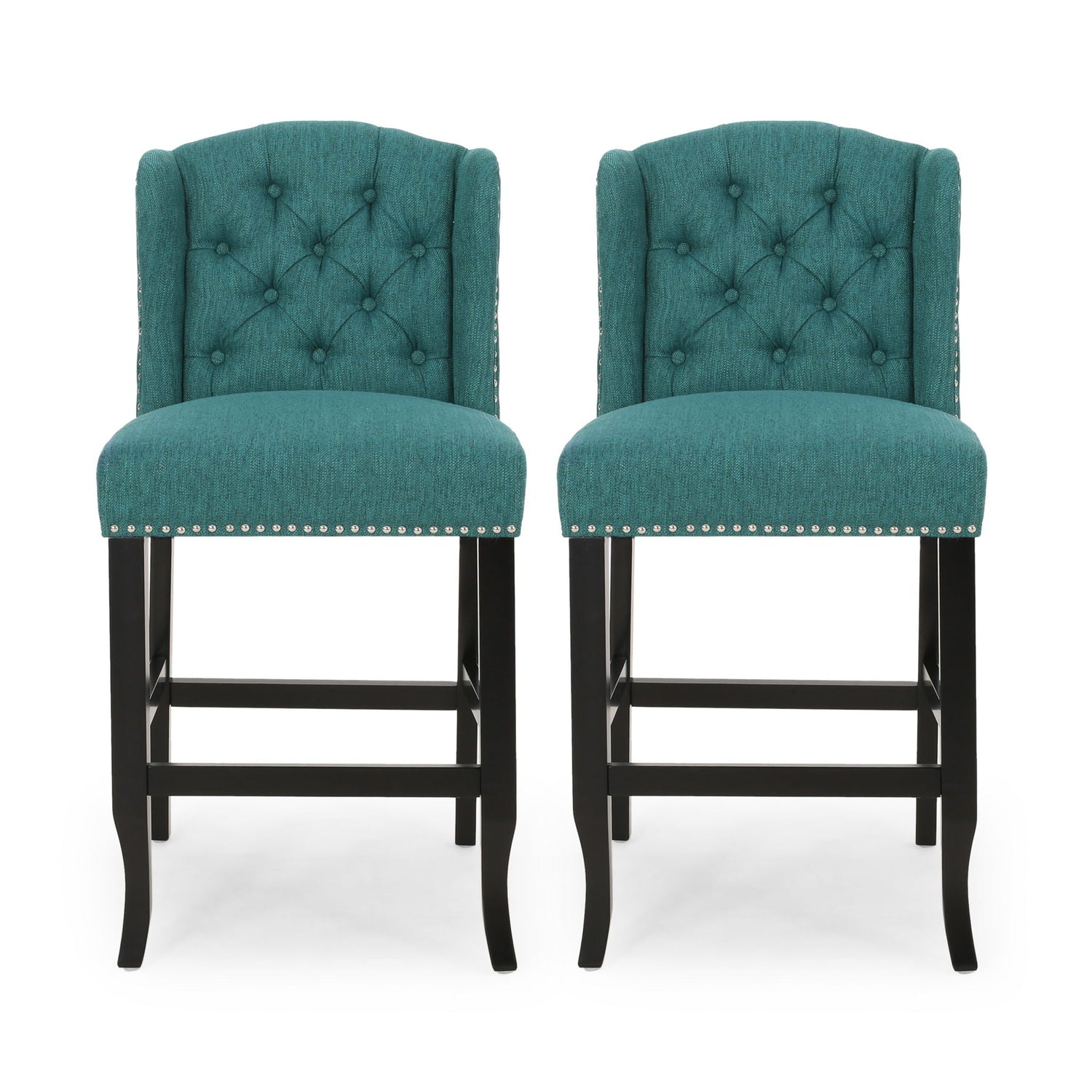 Solara - Fabric Tufted Counter Stool With Nailhead Accents (Set of 2) - Teal
