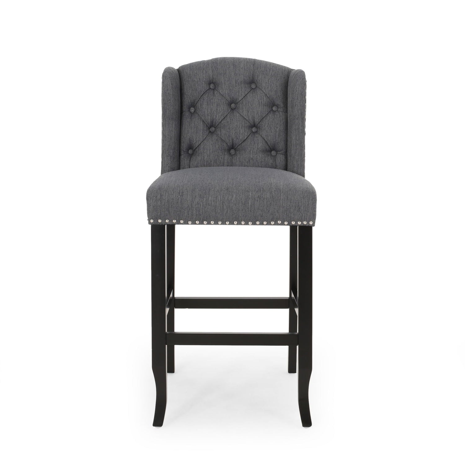 Solara - Fabric Tufted Counter Stool With Nailhead Accents (Set of 2) - Charcoal