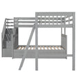 Twin Over Full L Shaped Bunk Bed & 3 Drawers, Ladder And Staircase - Gray