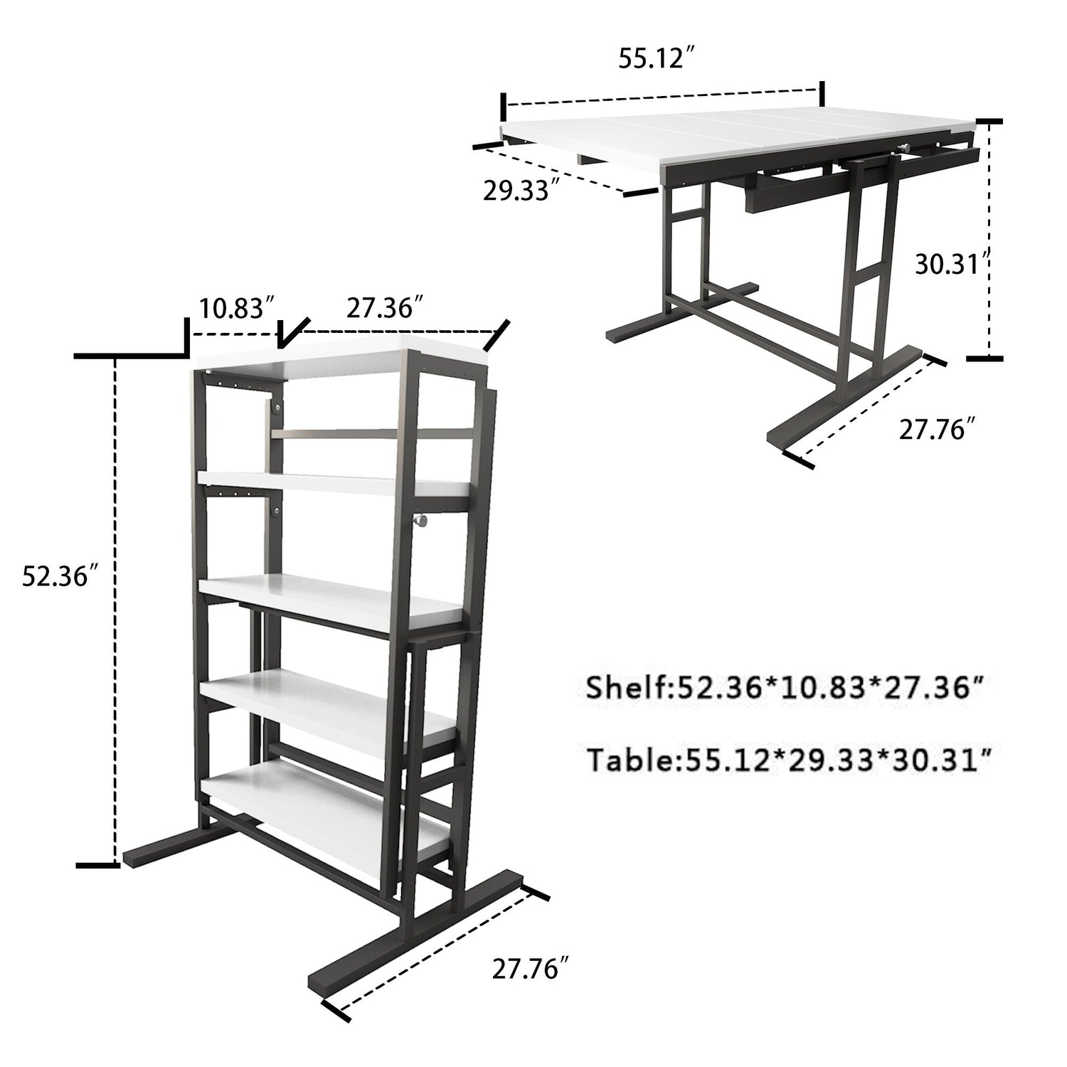 - Switch Mode: Table Mode: 55.12" L x 29.33" W x 30.31" H; Shelf Mode: 27.36" L x 10.83" W x 52.36" H.