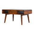 - Artisan Furniture Solid Wood Curved Coffee Table - This Coffee Table offers clean, curved edges and has been constructed from 100% Solid Mango Wood in a rich, finish. Some features include 2 drawers that have a shiny knob, 2 open slots to place any books, photo frames or ornaments and stands on 4 Nordic style legs.