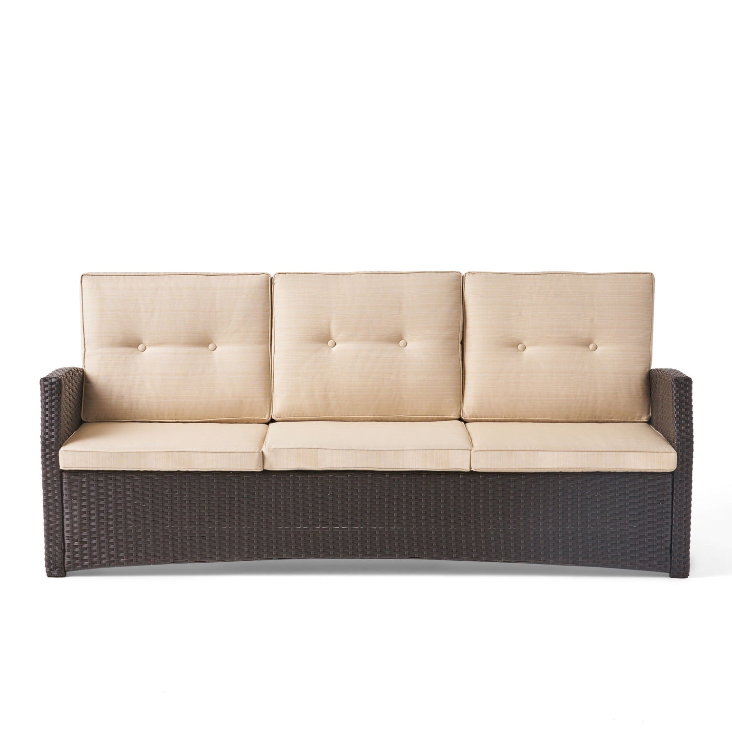 - Durable Construction: Crafted with a sturdy steel frame, this sofa ensures long-lasting durability. The combination of PE Rattan and iron materials contributes to its robust structure, providing stability and reliability for outdoor use.