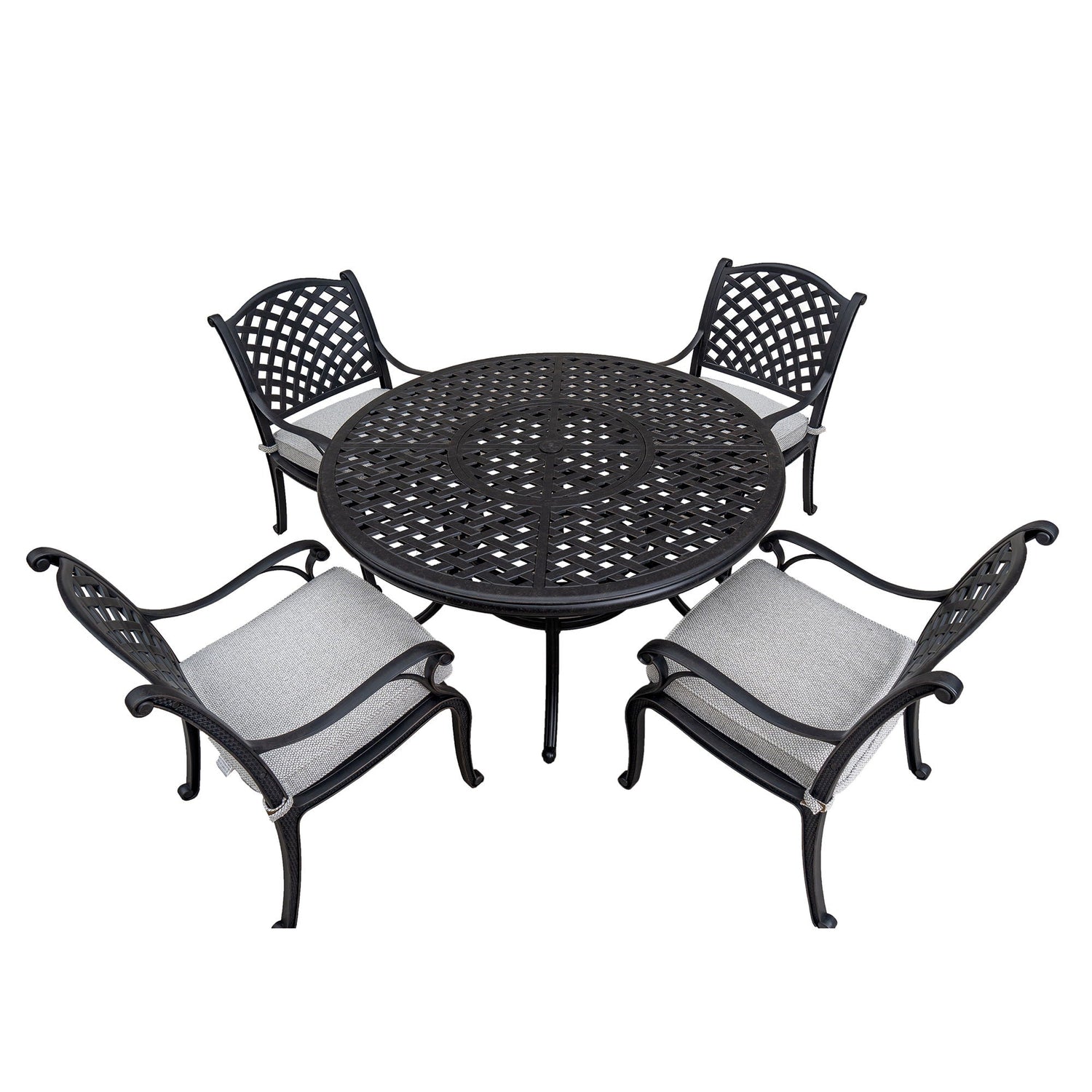 Stylish Outdoor 5 Piece Aluminum Dining Set With Cushion (4 Arm Chairs And Table) - Sandstorm by Couch.com