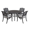 - 5-Piece Dining Set: Versatile set includes four armchairs and a round table, ideal for outdoor gatherings.