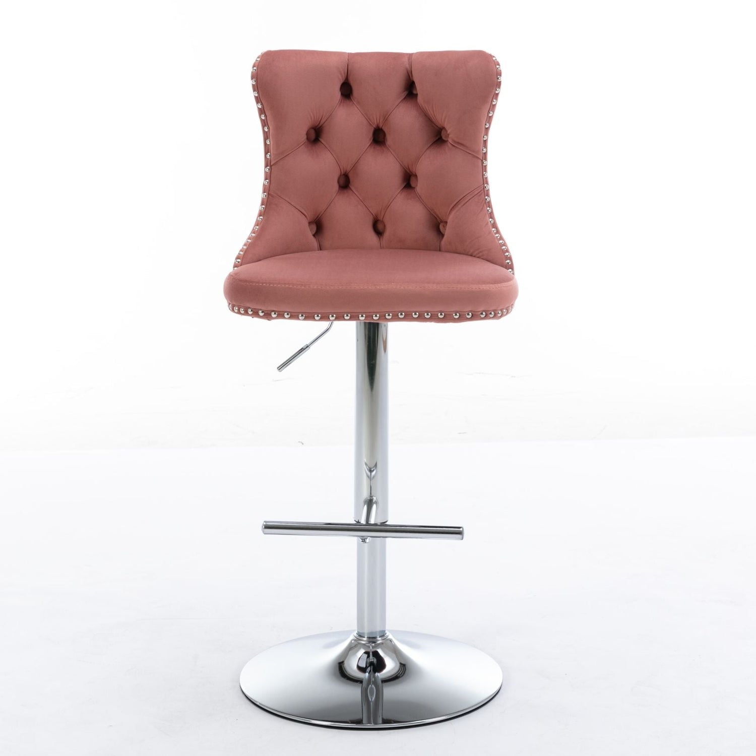 Swivel Velvet Barstools Adjusatble Seat Height From 25-33", Modern Upholstered Chrome Base Bar Stools With Backs Comfortable Tufted For Home Pub And Kitchen Island 1712Pk (Set of 2) - Pink