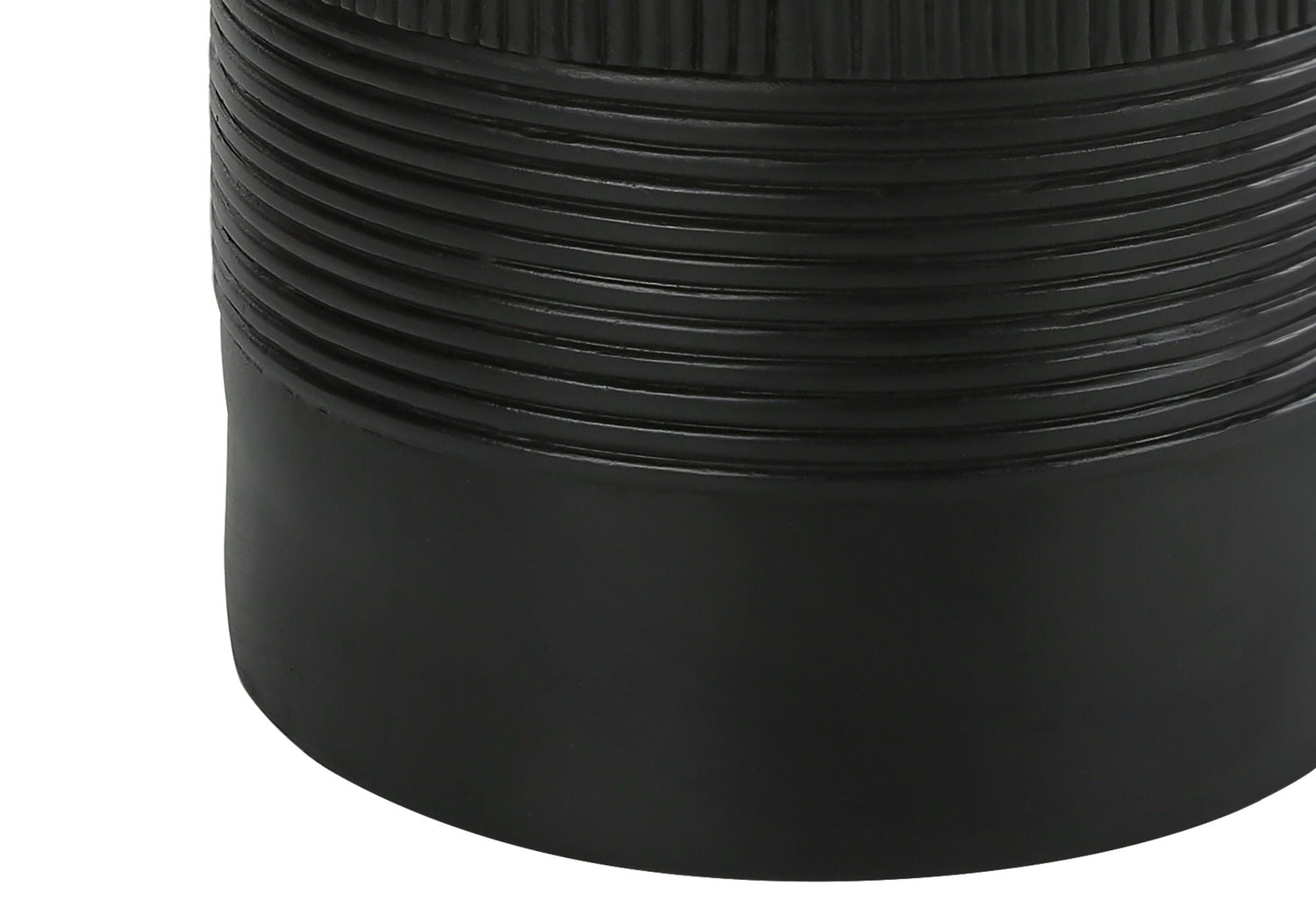 - Stylish Design: This contemporary table lamp features a bold, cylinder-shaped design with a textured black resin base and a fabric ivory shade, topped with a round gold finial, adding a fashionable touch to any room.