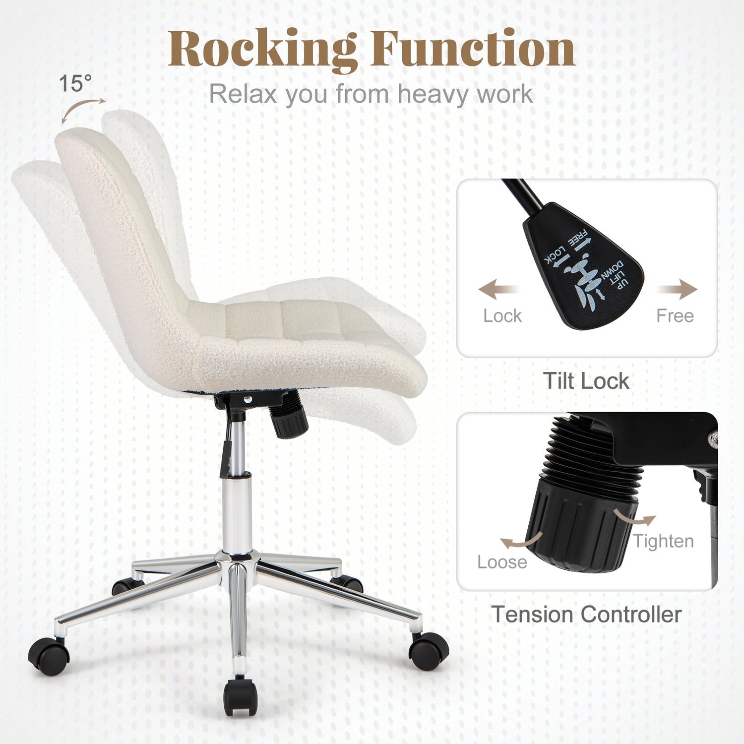 Teddy Fleece Armless Office Chair Makeup Vanity Chair-White by DirectDeals