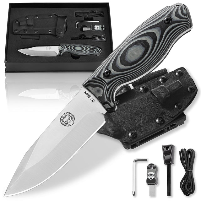 - ✅ ELITE FIXED BLADE KNIVES MADE TO LAST: We are offering you an 8.6" outdoor knife equipped with a 4.0" D2 steel blade of 0.136" thickness and 58-60 HRC hardness- a razor sharp blade for optimal functionality.