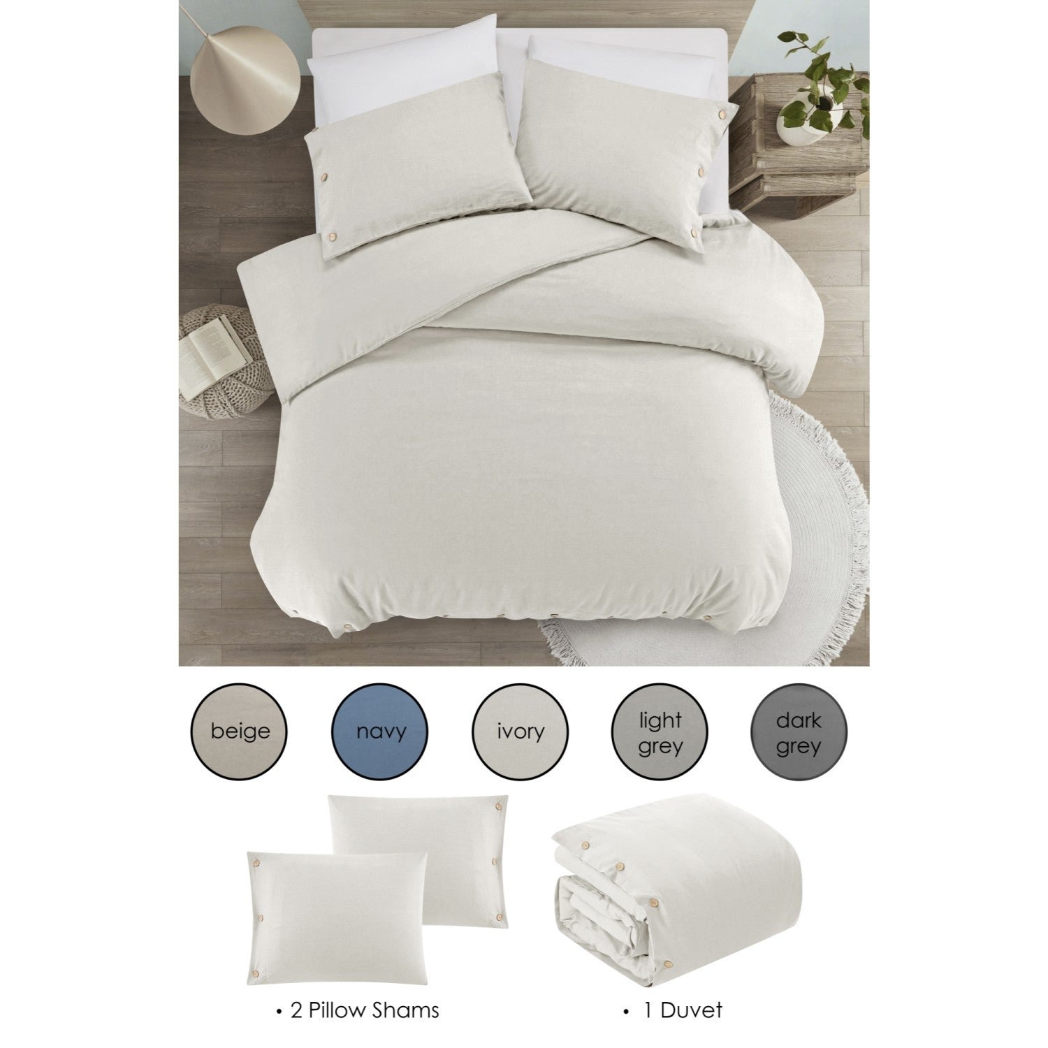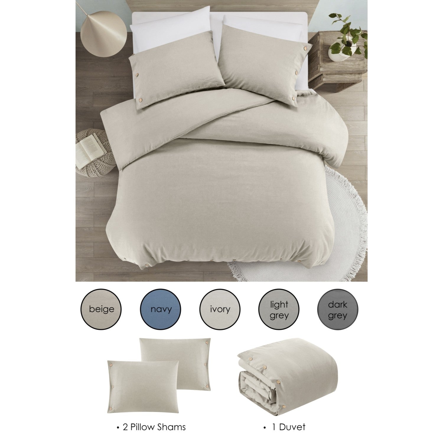 - SOFT AND COZY - Duvet set piece woven from high quality linen and cotton materials to provide a more breathable and comfortable fabric. The warm neutral color blends harmoniously with a variety of decor, adding style and comfort to your home.