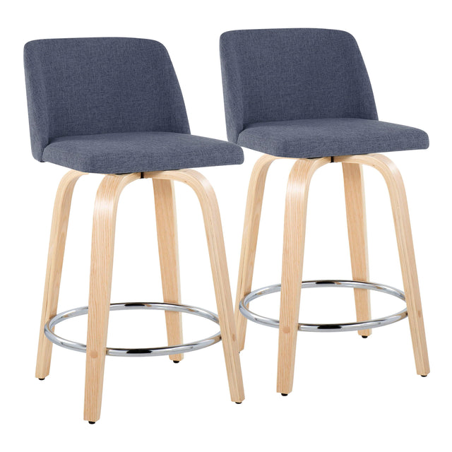 Toriano - Contemporary Fixed Height Counter Stool With Swivel With Round Footrest (Set of 2) - Natural / Blue