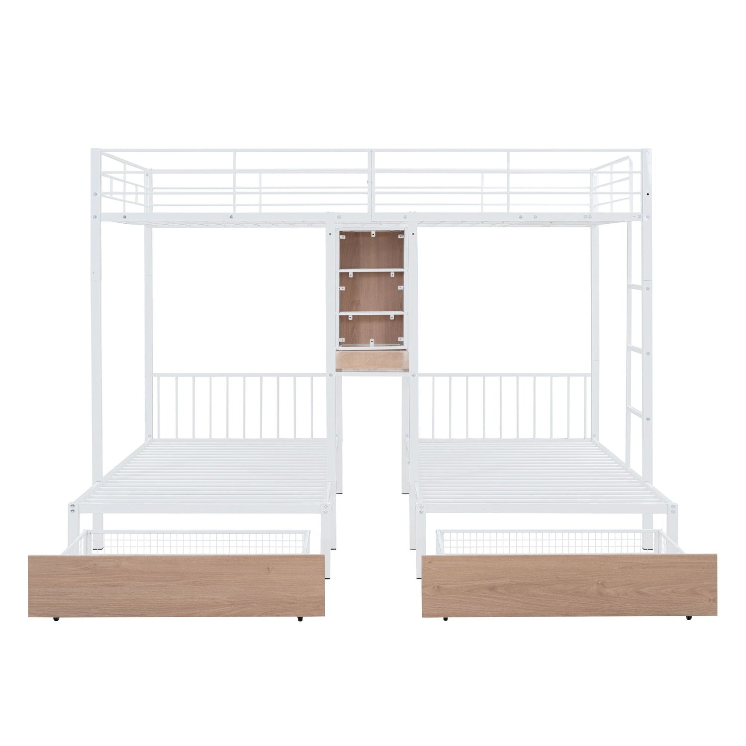 Triple Bunk Bed With Drawers, Multi-Functional Frame With Desks And Shelves In The Middle by Couch.com