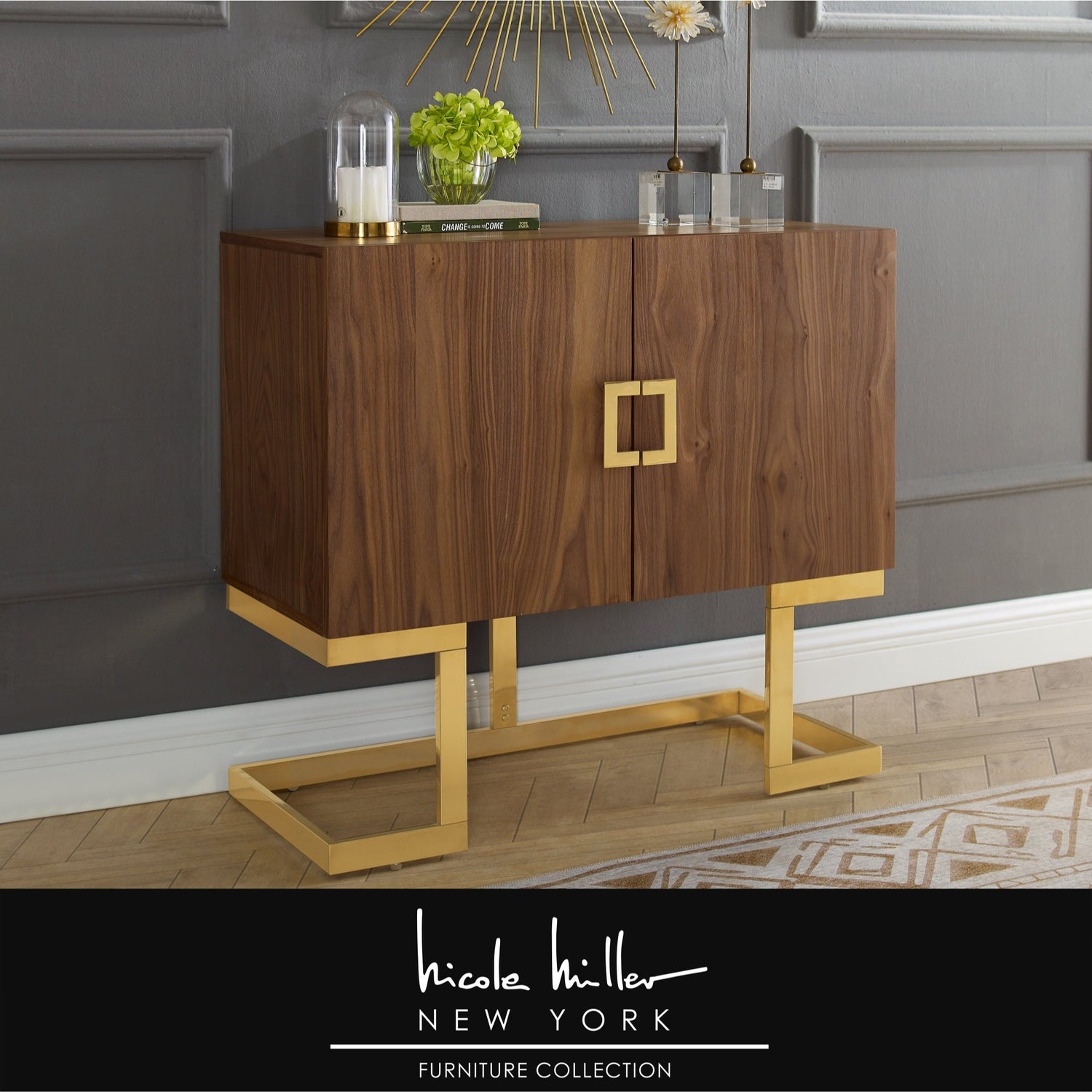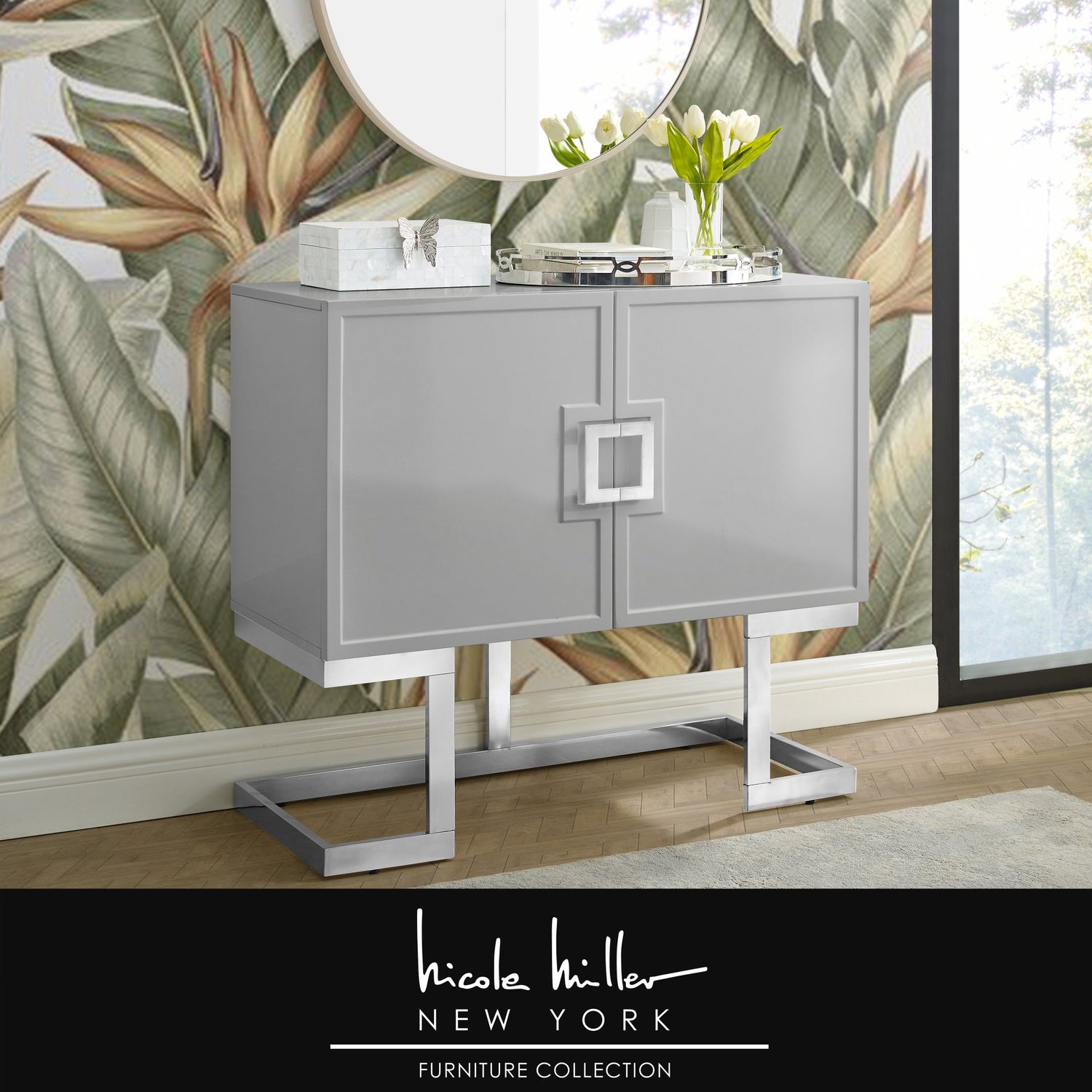 - RELIABLE STABILITY and DURABILITY - Built from durable engineered wood with a sturdy stainless steel base in polished finish, this modern home accent cabinet is made to last and is sturdy enough to hold all of your items.