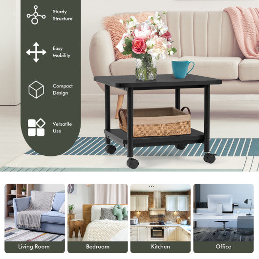 Under Desk Printer Stand with 360° Swivel Casters-Black