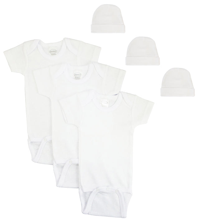 Short Sleeve Onezie Bodysuits (100% Cotton), Short Sleeve Onezie Bodysuits (100% Cotton), Short Sleeve Onezie Bodysuits (100% Cotton), White Baby Cap (100% Cotton), White Baby Cap (100% Cotton), White Baby Cap (100% Cotton)