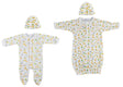 Terry Sleep 'n Play (Small 0-3M) (80% Cotton / 20% Polyester Terry), Unisex Print Gown (100% Cotton), Printed Baby Cap (100% Cotton), Printed Baby Cap (100% Cotton)
