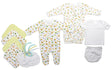 Unisex Print Gown (100% Cotton), Terry Sleep 'n Play (Small 0-3M) (80% Cotton / 20% Polyester Terry), Infant Three Piece Bib Set (80% Cotton / 20% Polyester Terry), Four Piece Wash Cloth Set (80% Cotton / 20% Polyester Terry), White Interlock T- Shirt & Panty Set (100% Cotton)