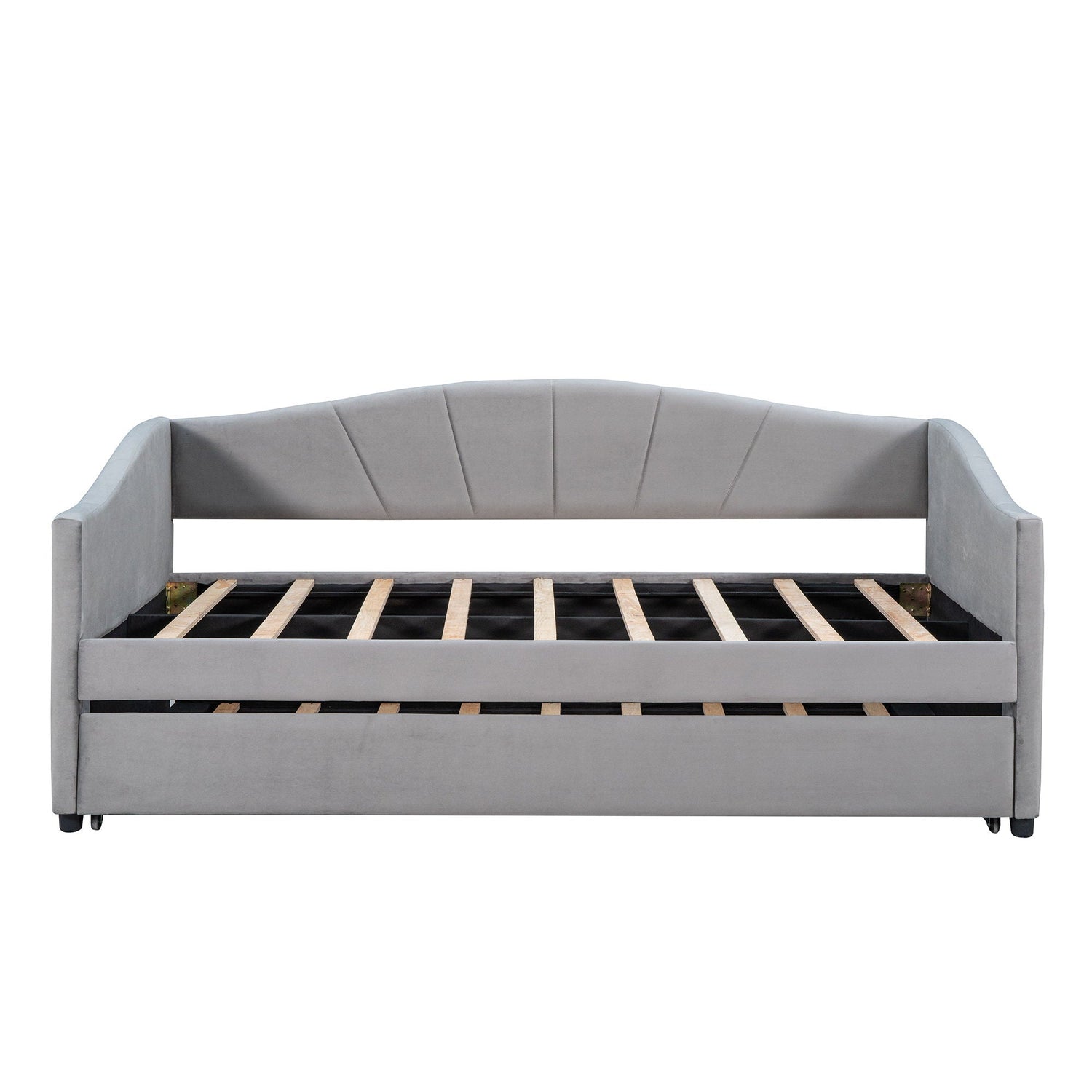 Upholstered Daybed Sofa Bed With Trundle Bed And Wood Slat by Couch.com