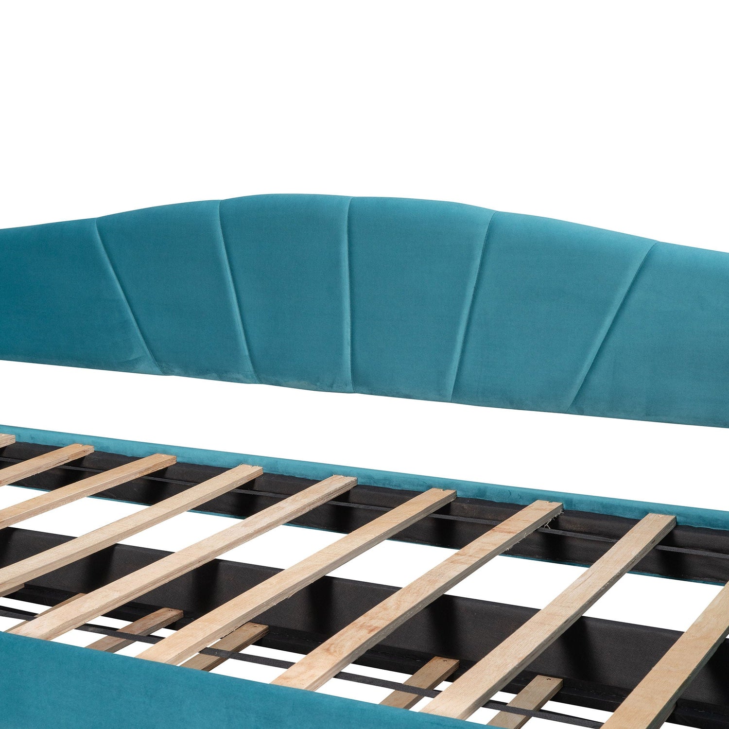 Twin Size Upholstered Daybed Sofa Bed With Trundle And Slat - Blue