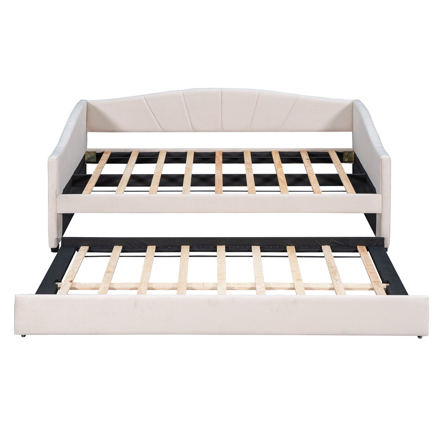 Twin Size Upholstered Daybed Sofa Bed With Trundle And Slat - Beige