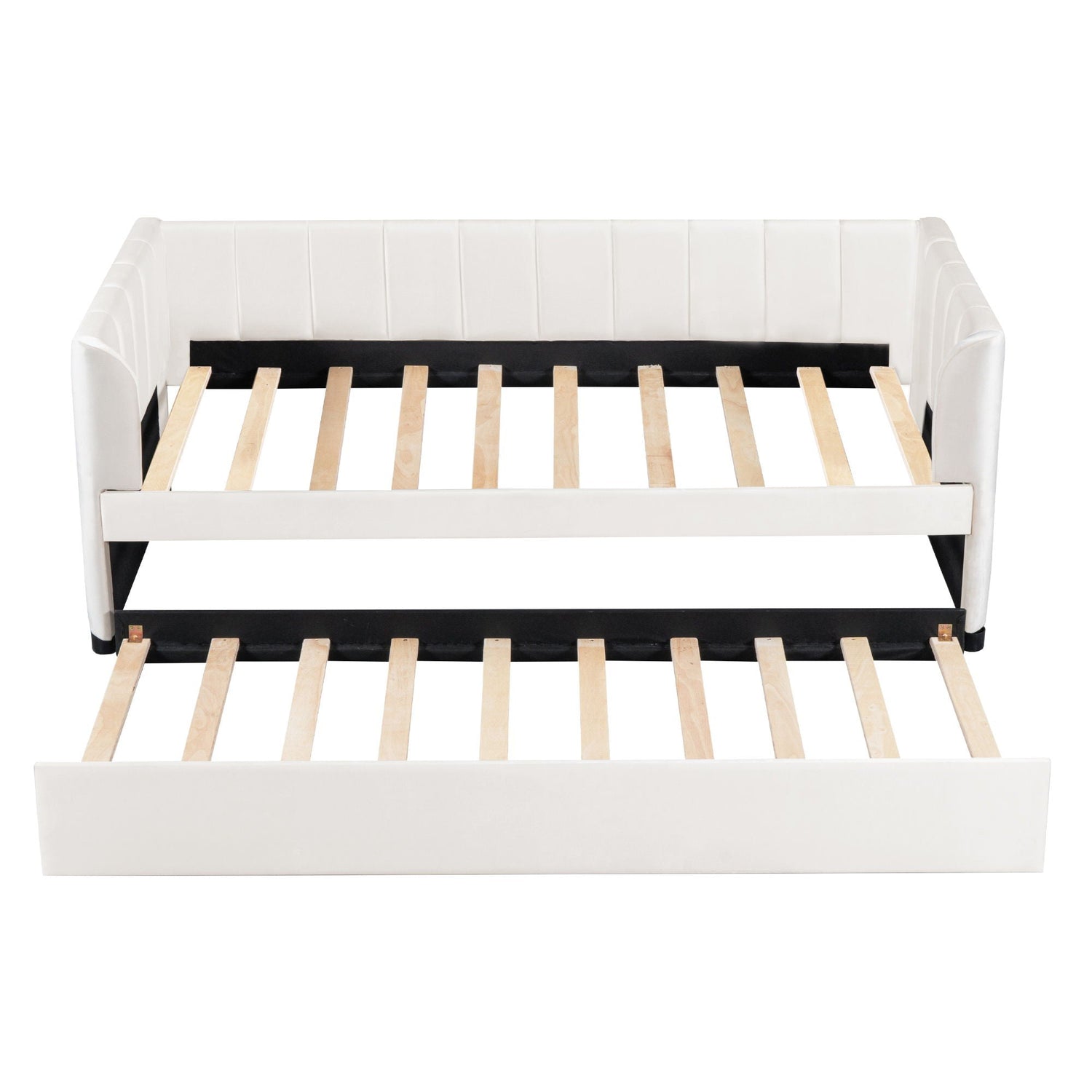 Twin Size Upholstered Daybed With Ergonomic Design Backrest And Trundle - Beige