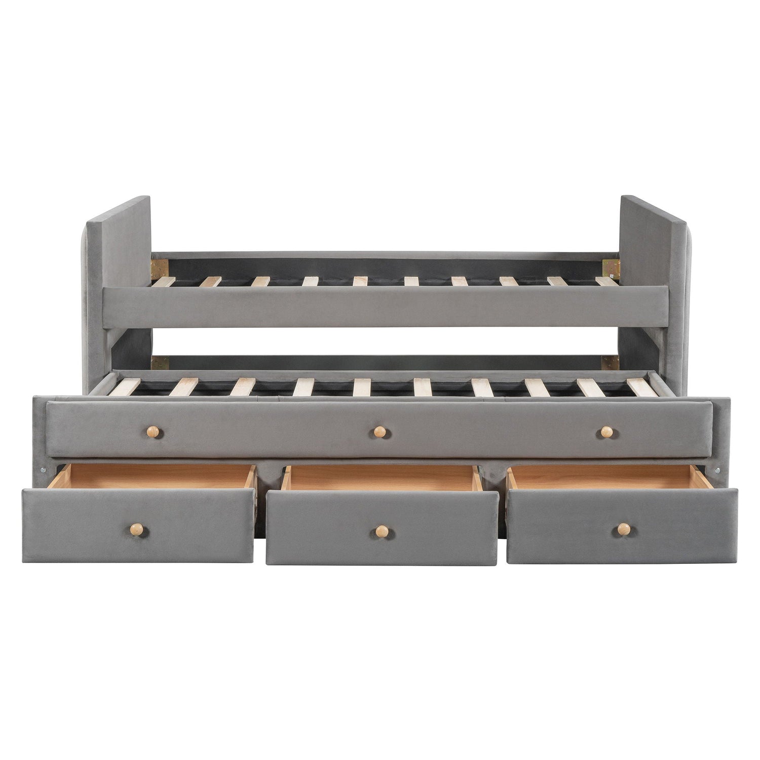 Twin Size Upholstered Daybed With Twin Size Trundle And Drawers - Gray