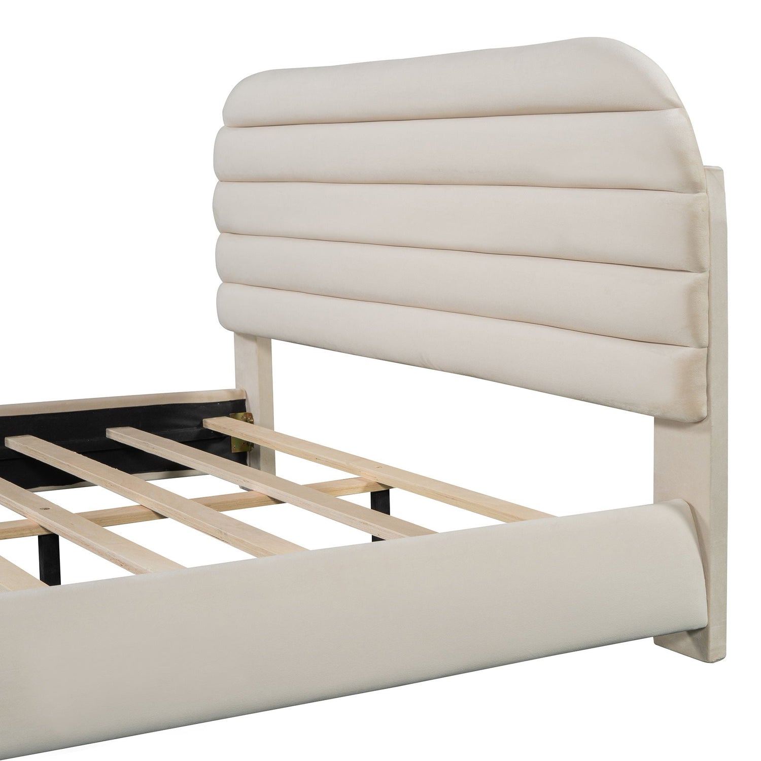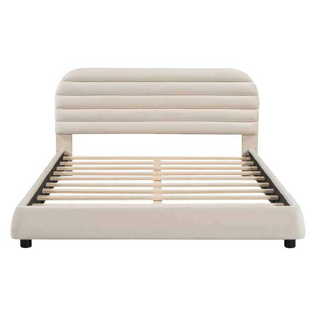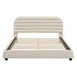 Queen Size Upholstered Platform Bed Frame And Stylish Curve Shaped Design - Beige