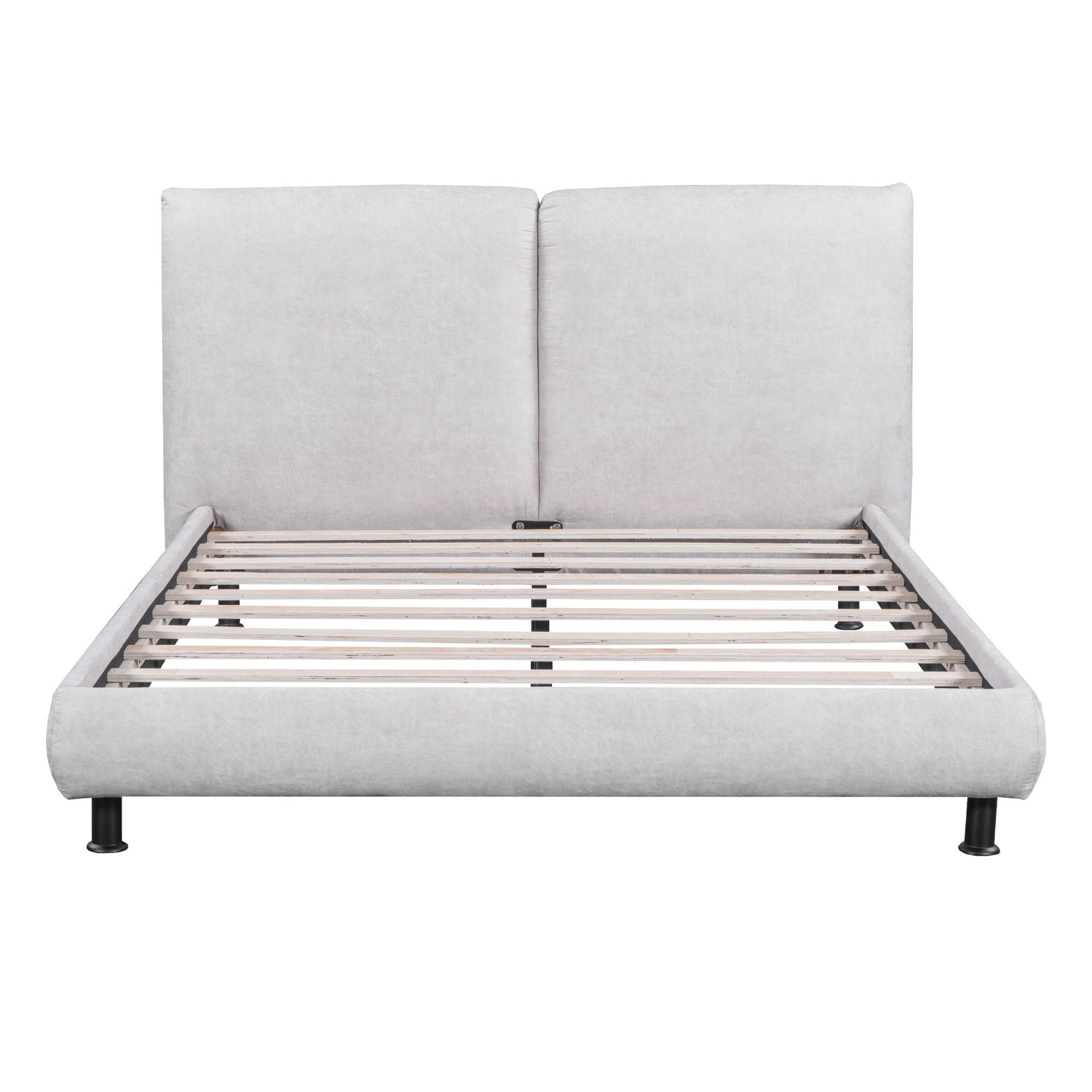 Queen Size Upholstered Platform Bed With 2 Large Headrests And Thick - Gray