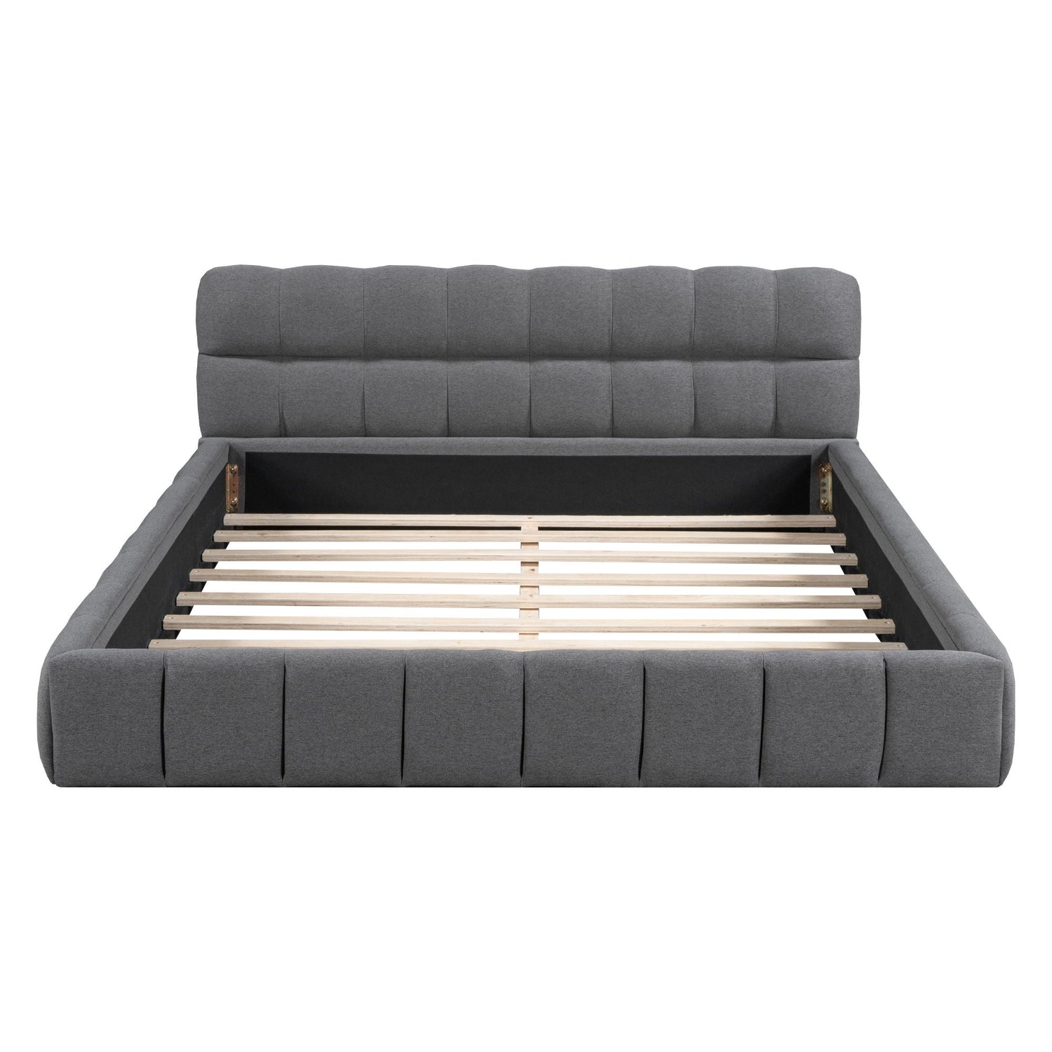 Queen Size Upholstered Platform Bed With Thick, Grounded Bed With Solid Frame - Gray