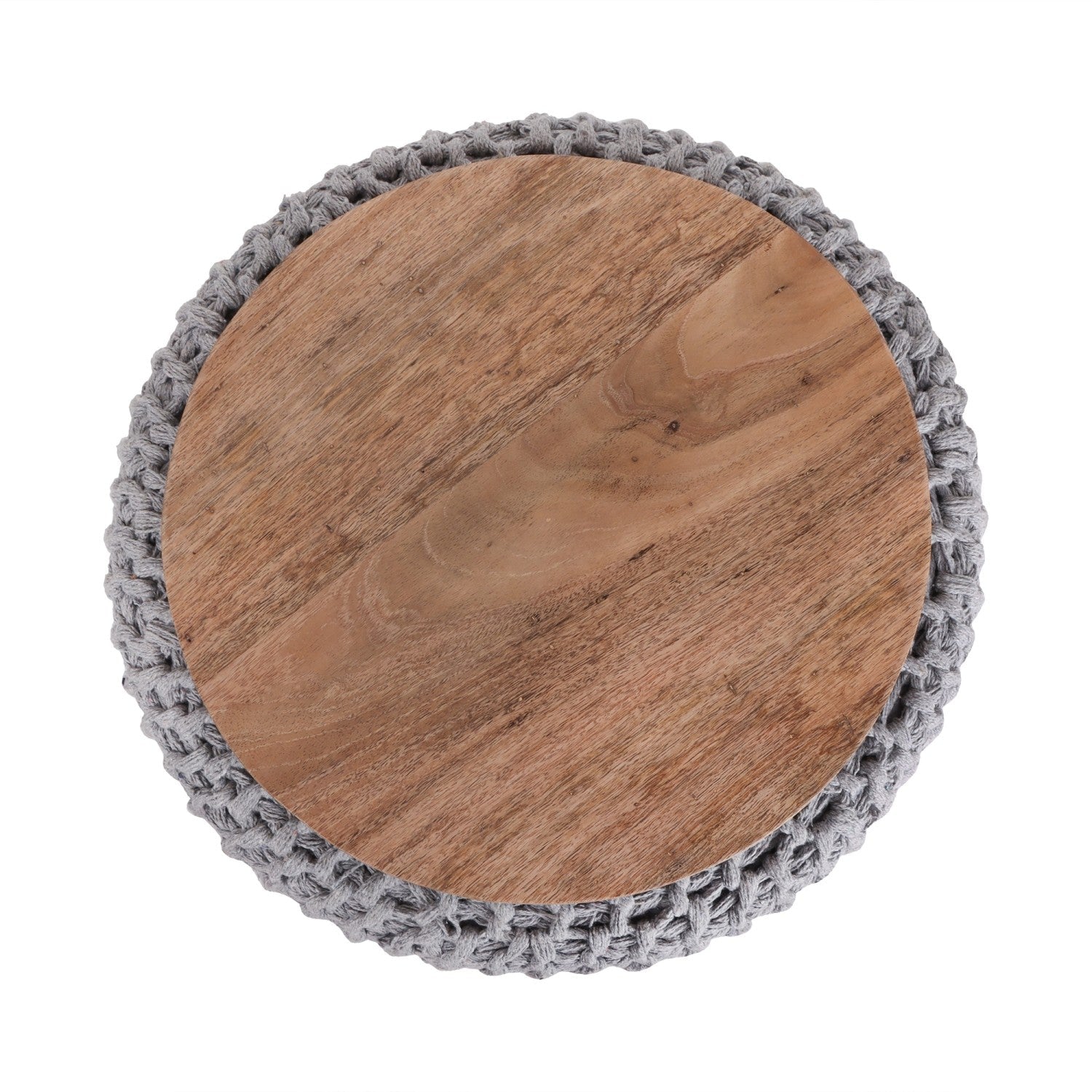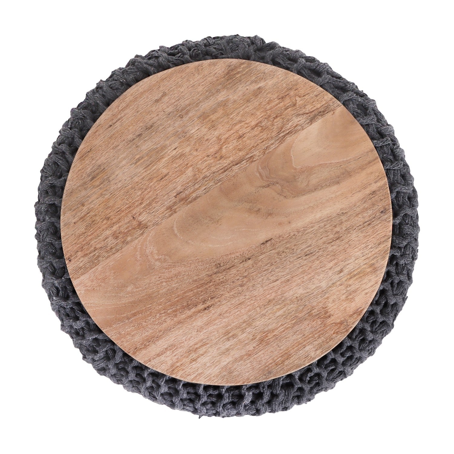 Urijah Hand Knitted, Wooden Tray Pouf - Ivory is backordered and will ship as soon as it is back in stock.