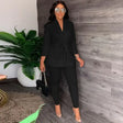 V-Neck Lace-up Shirt Tight Pants Two-piece Suit - Black / S is backordered and will ship as soon as it is back in stock.