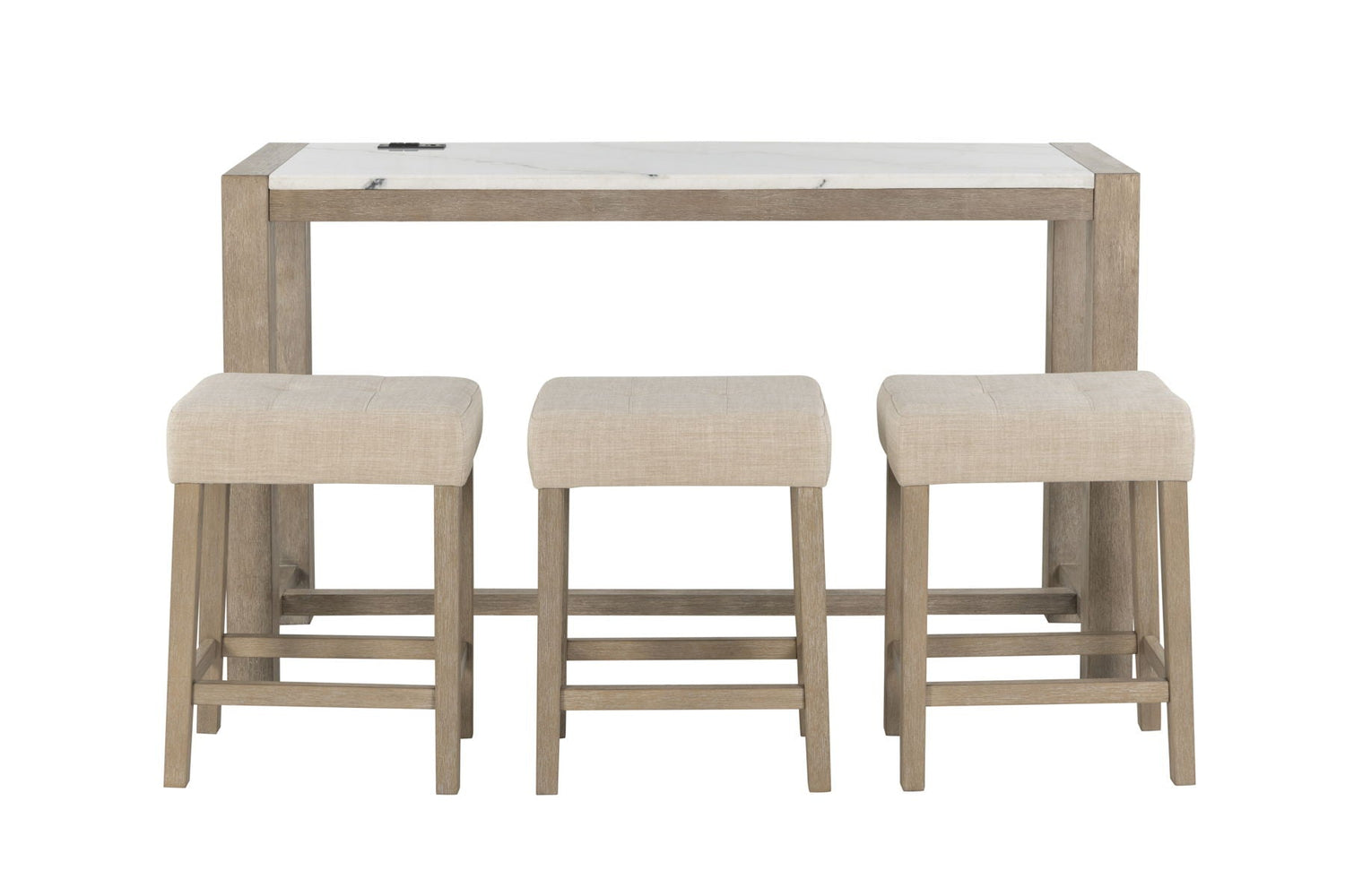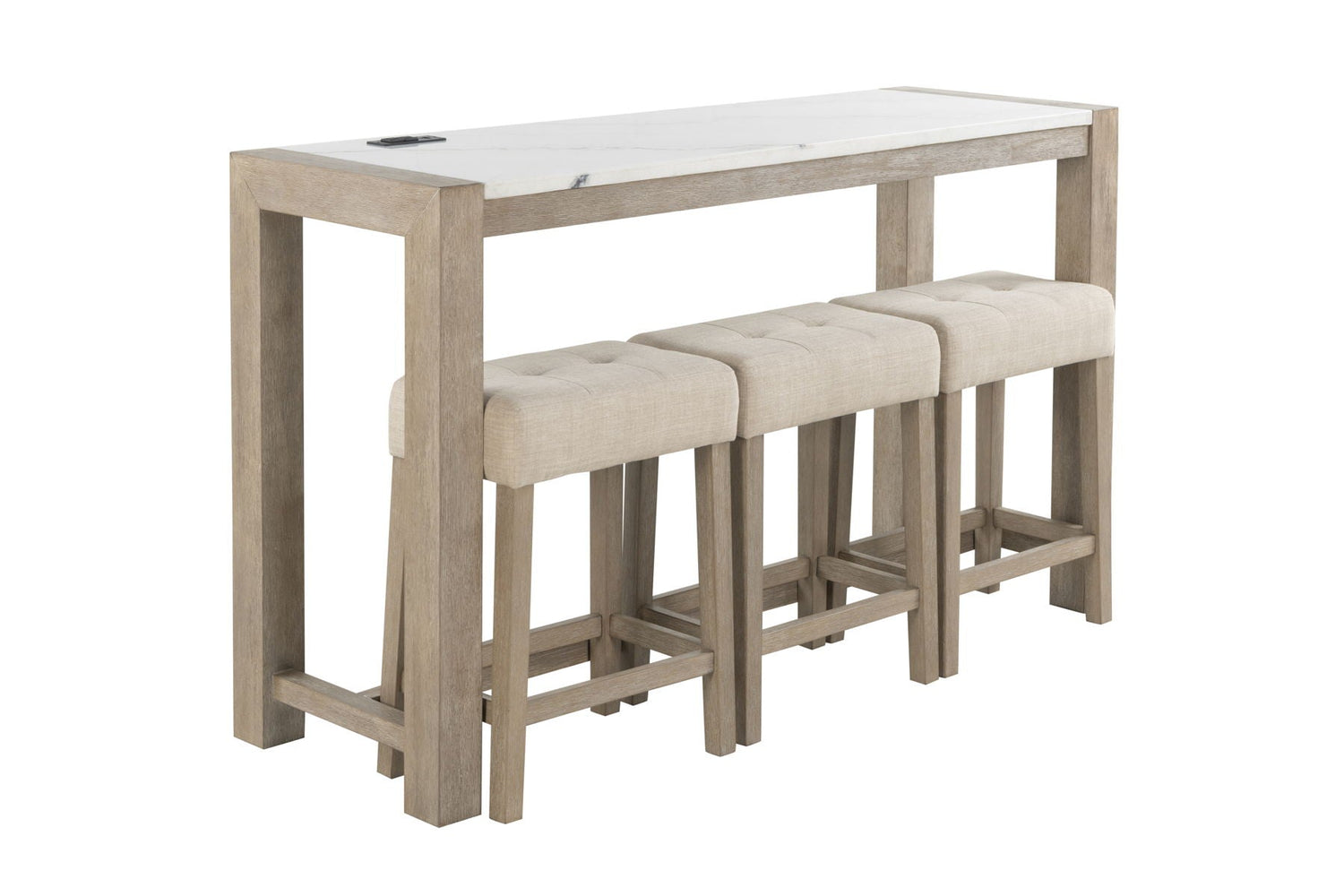 Vanilla - Real Marble Sofa Table With Power And 3 Stools - Beige / Natural