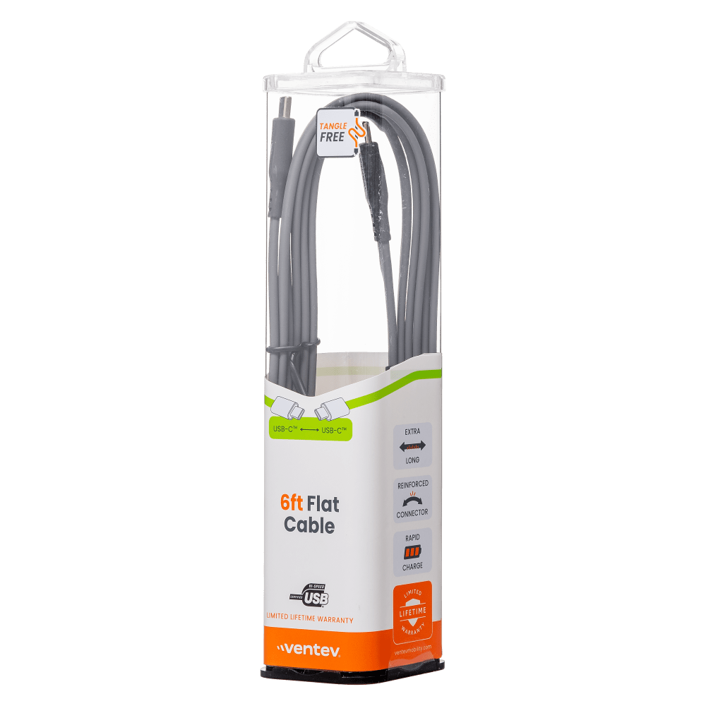 Ventev's flat, tangle-resistant chargesync cables charge your device and transfers your favorite photos, music, videos and more with ease, and is compatible with tablets, smartphones, tablets, Bluetooth and GPS devices. The Ventev USB-C to USB-C 2.0 connector is compatible with the newest C devices, designed for durability, USB-IF certified, and the reversible C connectors at each end brings charging simplicity. VentevÕs Lifetime warranty guarantees their products to be free of defects in material and workmanship, so if a product doesn't perform as specified, they'll replace it.