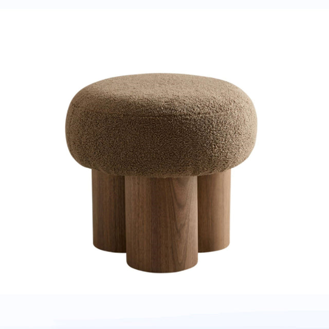 Mushroom Stool With Lamb Wool Seat And Walnut Veneer Barrel Pipe - Brown