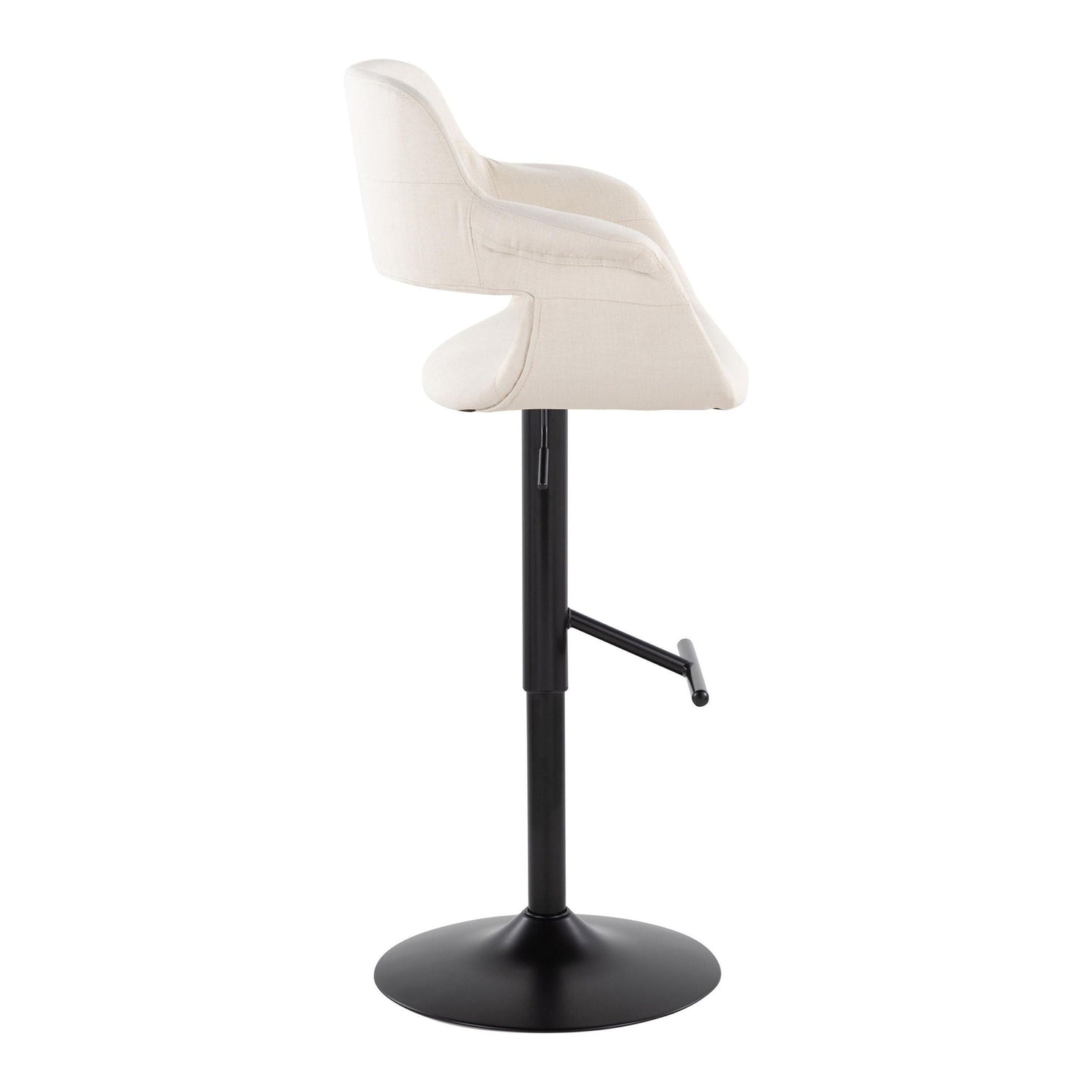 Vintage Flair - Mid-Century Modern Adjustable Barstool With Straight T Footrest (Set of 2) - Black / Cream