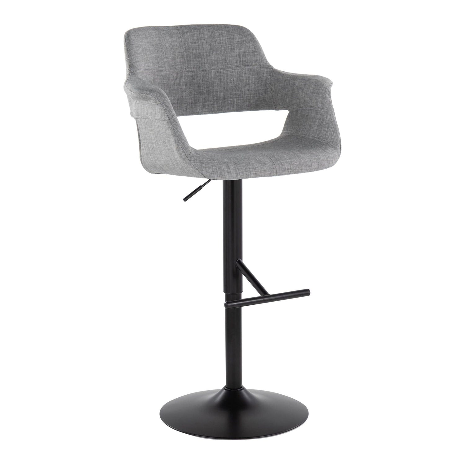 Vintage Flair - Mid-Century Modern Adjustable Barstool With Straight T Footrest (Set of 2) - Black / Light Gray