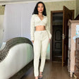 Waffle Tracksuit Set - Beige / Small is backordered and will ship as soon as it is back in stock.