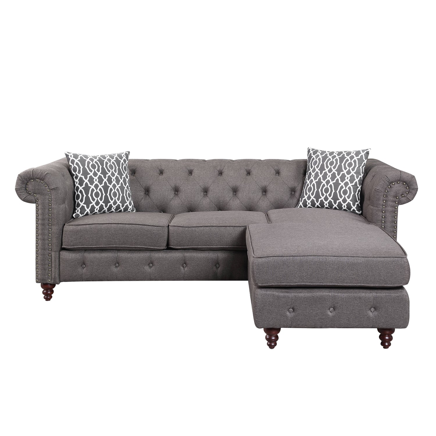- Stylish Detailing: The sectional's design includes button tufting and elegant nailhead trim, which contribute to its sophisticated and timeless aesthetic, making it a stylish addition to any living space.